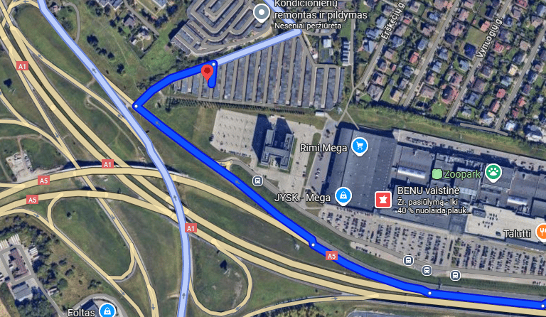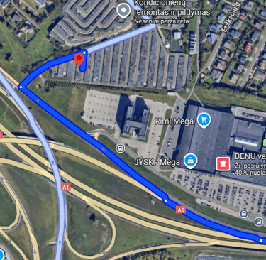 Navigacija dažnai klaidina ir veda per šviesiai mėlyną kelią. Rinkitės tamsiai mėlyną nuotraukoje!